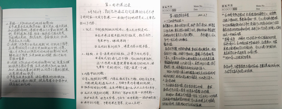 但对于李剑老师来说,她觉得线上教学并没有太大的困难。李剑老师是中学地理教学论课程的主讲教师,长期指导师范生从业技能训练和教育实习,指导学生多次获得省级师范生教学技能大赛特等奖和一等奖。而在疫情发生前,在寒假前实习组的师范生实习试讲活动中,李老师就已经通过听课,基本了解所指导的每个学生的教学技能尤其是教学基本功的优缺点,并针对各自特点,为每位学生制定了寒假期间居家进行基本功训练的计划。这为开学后的教育实习奠定了良好基础,也为应对突如其来的线上模拟教育实习做好了“战略储备”。