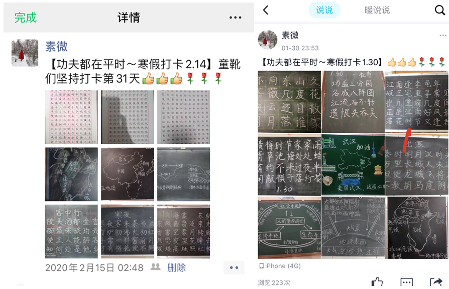 图3 QQ空间发布打卡成果 图4微信朋友圈发布打卡成果