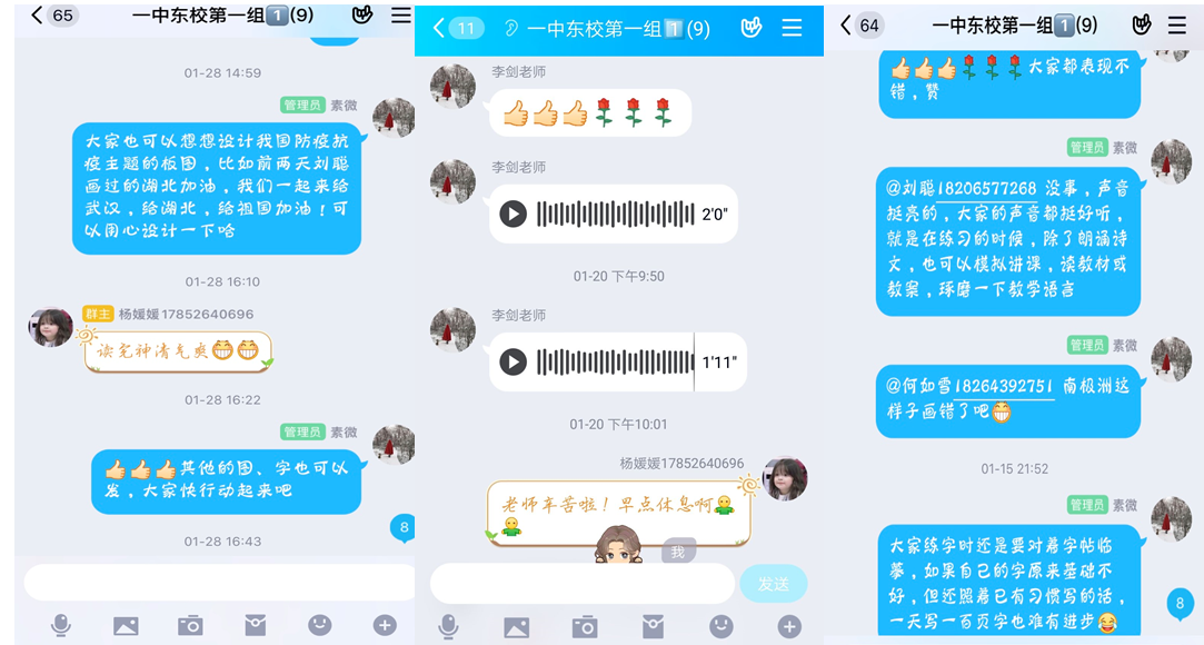 有了前期师生线上交流及教学基本功训练的基础,李老师和学生们在新学期线上模拟实习就比较驾轻就熟,配合无虞。针对模拟实习教学,充分利用现有的即时交流软件、直播平台和办公软件,综合运用文字、语音和视频等互联网即时交流手段,尽量做到在线如在课堂,连线既是对面,以获得不亚于教室课堂的效果。