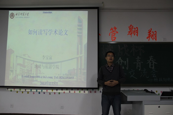 李老师说:“中国当前的论文数量虽然在世界上仅次于美国,但其质量与很多发达国家差距明显,这就要求我们加强科技创新能力。”老师还以他的几篇论文为例,向同学们教授了如何进行科研论文写作,并对学生们在论文写作中可能出现的问题进行了分析。