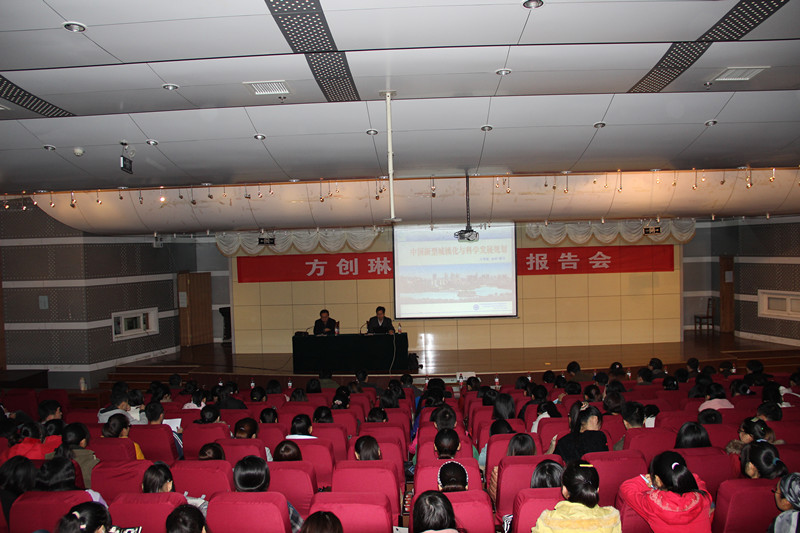 11月14日下午,中国科学院方创琳教授在图书馆报告厅做了题为“中国新型城镇化与科学发展规划”的学术报告,报告会由代合治院长主持,2011级卓越班同学以及老虎机