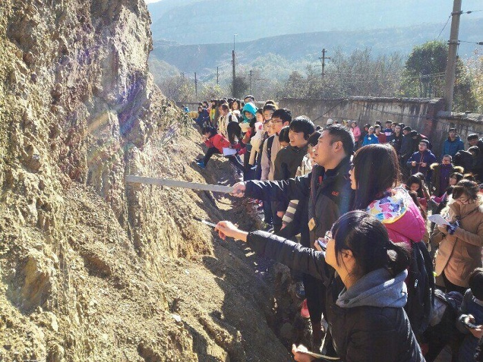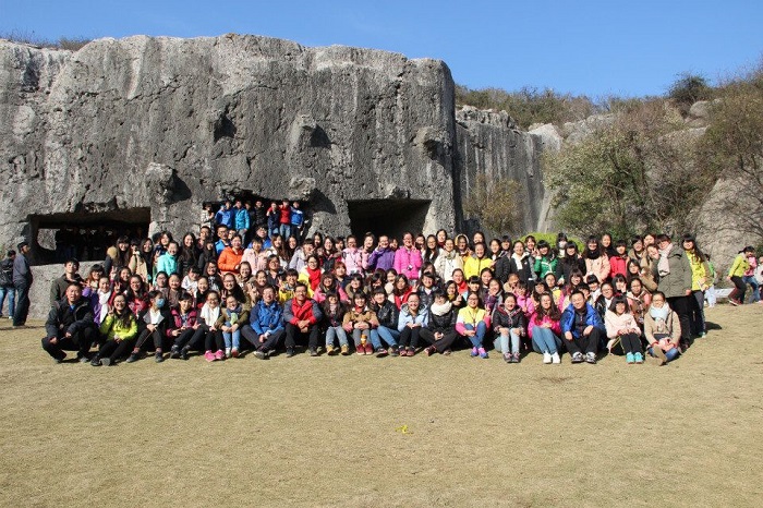 第五天是行程劳累的一天,同学们在刘飞老师的带领下认真学习了孔山和汤山的地貌地形以及岩石特性。然后,一行人来到阳山石碑,周长春老师给大家讲述了阳山石碑的一些开凿细节,让同学们了解了阳山石碑的宏大和古代劳动人民的智慧,并给大家讲解了明朝的有关历史,告诉同学们由于国力问题和迁都北京,石碑没有完工。随后,同学们跟随李宝富老师来到了猿人洞,并认真听取了李老师对于钟乳石的讲解。