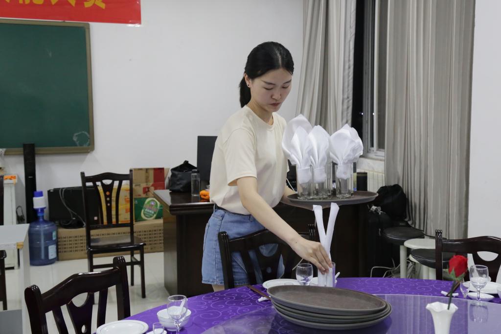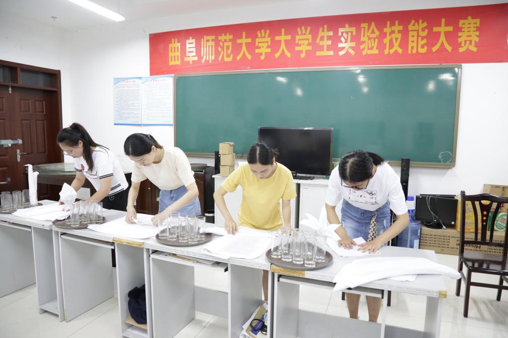 举行了实验技能大赛决赛之中餐宴会摆台与西式铺床,本次比赛由旅游管理专业闫颖、张岩君、邓薇、孔令艳四位老师和三名研究生担任评委。经过初赛的角逐,两个比赛项目分别有20名学生进入决赛。 比赛开始前,由两位评委老师分别向大家介绍比赛规则,比赛限时十分钟。选手们认真专注,操作熟练,无不展现出老虎机