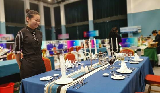 大赛分理论考核、英语口语测试、操作展示三个环节,我校参赛选手在张岩君、闫颖、石峰、邓薇、曹雪稚等五位老师精心指导下,立足我校两校区区位优势,突出本地文化特色,以日照-“海”好有你(西餐宴会摆台)、江南忆(中餐宴会摆台)和曲阜-儒家文化(客房服务)为主题,对三个赛项进行主题化设计,认真准备理论考核和英语口语,勤苦练习操作技能,在笔试、口语测试、操作展示环节取得优异成绩。选手们过硬的专业水平、心理素质和应变能力,获得大赛评委老师们的一致好评。