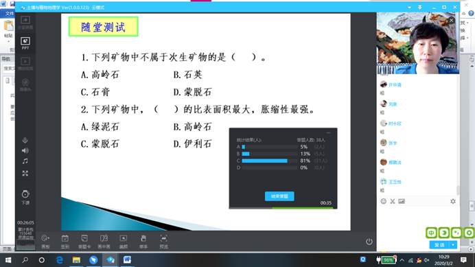 在老师授课过程中,老师讲授细致认真.语速适中,能够让我们更好的理解讲授内容。在授课期间,多次连线互动,形成良好的交流集国,期间还设置了随堂问题.以便了解大部分同学掌程情况。体现了老师的细数程度,让我们能够更好的掌握老师所讲述的内容。非常感谢老师讲解。