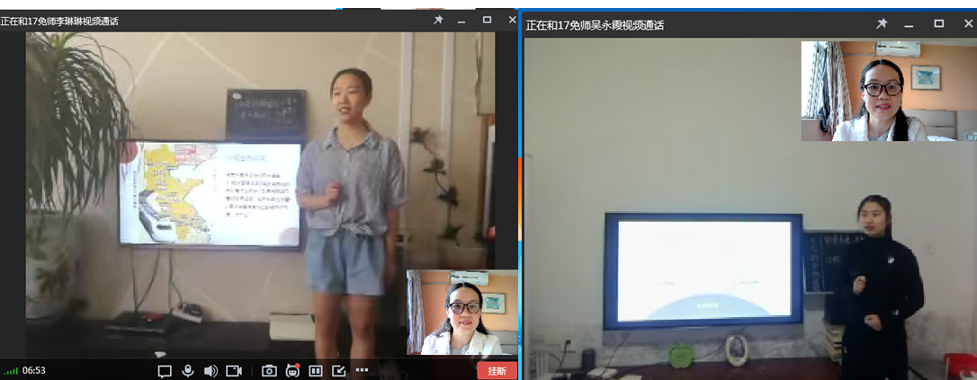 但对于李剑老师来说,她觉得线上教学并没有太大的困难。李剑老师是中学地理教学论课程的主讲教师,长期指导师范生从业技能训练和教育实习,指导学生多次获得省级师范生教学技能大赛特等奖和一等奖。而在疫情发生前,在寒假前实习组的师范生实习试讲活动中,李老师就已经通过听课,基本了解所指导的每个学生的教学技能尤其是教学基本功的优缺点,并针对各自特点,为每位学生制定了寒假期间居家进行基本功训练的计划。这为开学后的教育实习奠定了良好基础,也为应对突如其来的线上模拟教育实习做好了“战略储备”。