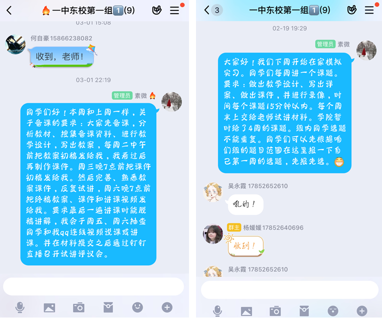 图5QQ群进行模拟实习任务安排 图6 QQ群提出备课要求