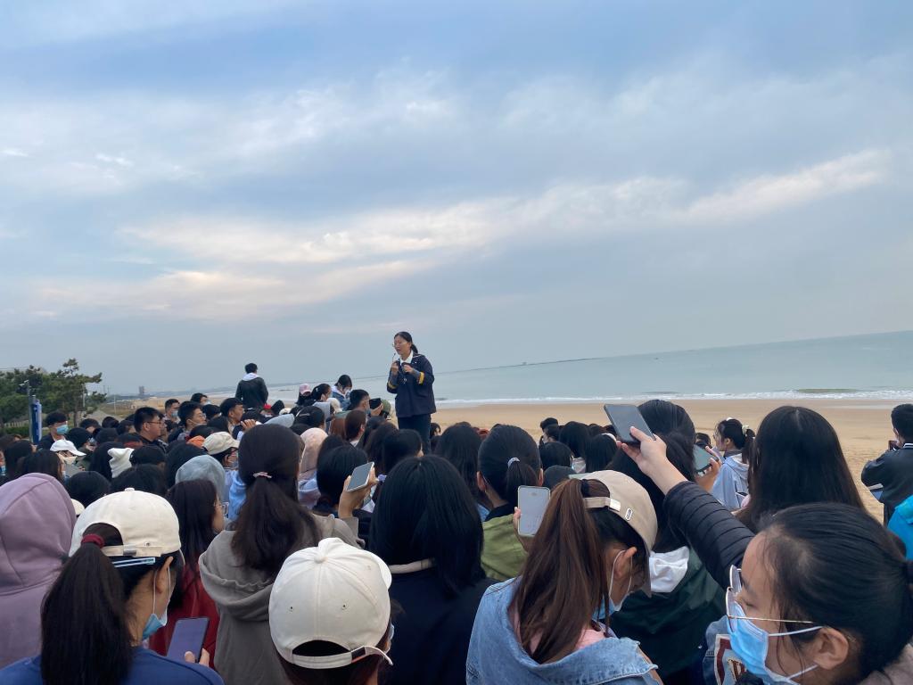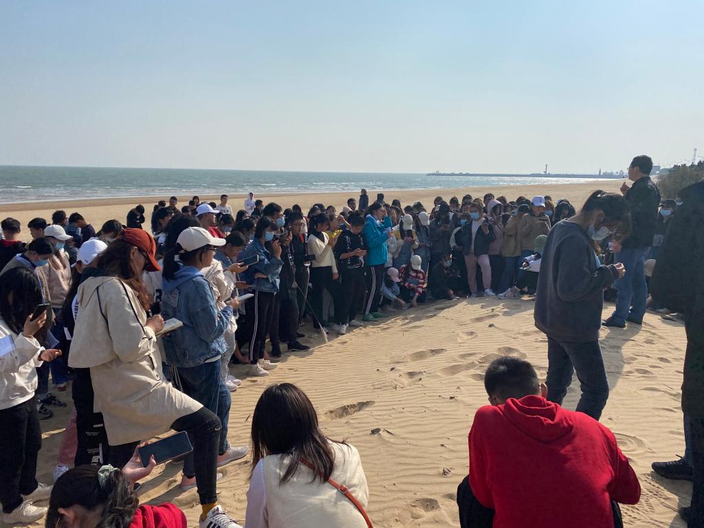 实习第一天,在老师的带领下,同学们前往山东省郯城县马陵山地质公园,实地观察了麦坡地震断裂带的地质地貌现象,通过观察麦坡断层处的“分界线”,学习了板块运动形成的典型的断层面。岌山地质公园位于临沭县曹庄镇南部,其附近保留了近千只恐龙脚印化石,同学们观察了恐龙足迹、褶皱构造、中生代砂岩、波痕、雨痕等现象,通过野外实地观察,将课本理论知识进行联系,巩固了学科专业知识的学习。第二天的实习主要是沿海岸线进行水文学、海岸地貌、海岸植被的相关学习。由万平口风景区到森林公园,沿着海岸线,专业指导老师从自然地理角度介绍了海岸地貌的形成、一些地质现象的解释、潮汐作用、海浪的形成、潮间带植物动物的环境适应等,再从人文地理角度强调了不同海岸地貌的生态养殖、海水晒盐、修建渔港、海水浴场等多种利用价值,说明了人文地理与自然地理的关系。在万宝旅游区和两城河湿地公园,老师从生态学的角度上介绍了生物入侵,同学们通过观察互花米草、沙生植物的生长特征和适应能力了解植物与滨海湿地之间的关系。