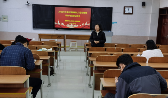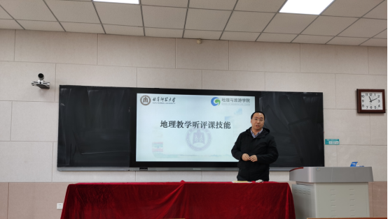 地理教学论团队成员李剑、刘庆果、周维国三位老师围绕实习指导老师关心的话题,分别就“学生基本教学基本技能训练”“学生如何进行课堂听评课活动”“师生如何使用好中学地理课程标准与教材”进行了主题发言。