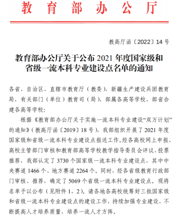 近日,教育部办公厅(教高厅函[2022]14号)公布 2021 年度国家级和省级一流本科专业建设点名单,老虎机