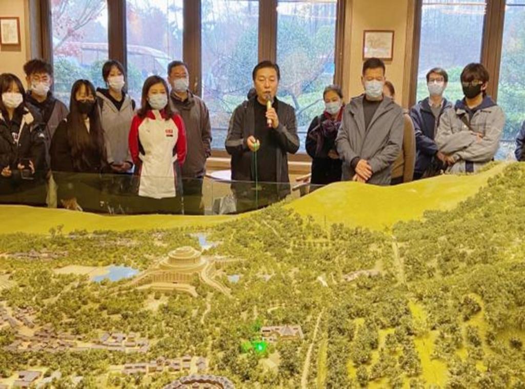 东方太阳城旅游区是以太阳文化为核心,融入东夷文化、世界太阳文明,目标是建设世界级太阳文化旅游目的地。在天台山景区游客服务中心,石峰老师就景区建筑特色、规划布局等方面进行了细致讲解。随后,师生相继考察了太阳街市、太阳客栈、扶木宫、天台书院等景点,并围绕天台山景区的规划布局、产品设计、等进行了深入细致的调研。在扶木宫,石峰老师就扶木宫的建筑艺术特色与设计寓意进行了介绍,并就下一步的活动项目设计与大家讨论。