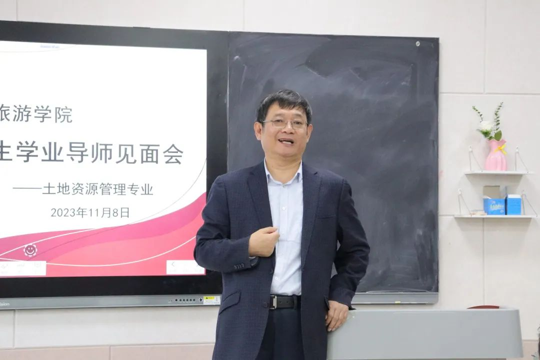 院长张全景、党委副书记刘伟、副院长吴军、旅游管理专业和土地资源管理专业各位学业导师以及辅导员出席,2023级旅游管理专业、土地资源管理专业全体同学参加了见面会。