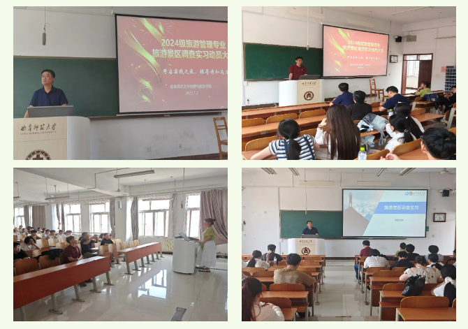2024级旅游管理专业同学前往安阳、焦作、开封开展了为期五天的旅游景区调查实习。7月2日,召开实习动员会,党委副书记刘伟作动员讲话,讲话中对实习期间的安全管理进行了重点强调和部署,副院长吴军就实习中专业学习提出要求,辅导员张乃宁就实习安全、组织管理进行了安排,学院党委委员刘志刚、专业教师徐凯参加会议。会议第二阶段,实习指导组组长石峰就实习的行程安排、实习重点、调研方法、作业要求等方面进行了讲解。