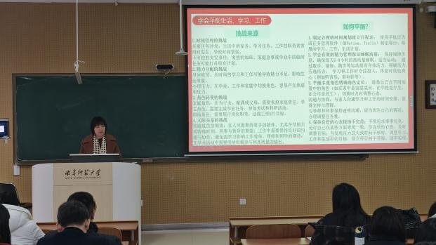 由于非全日制研究生利用周末和节假日时间上课,赵岩老师从出行安全和网络安全两方面,强调非全日制研究生要注意往返路途安全,谨防个人信息泄露。她针对非全日制研究生在时间管理和角色转换等方面面临的挑战,提供有效的指导,帮助他们学会如何平衡生活、学习与工作。