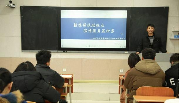 在第62个学雷锋纪念日来临之际,学院研究生会主办了一系列主题活动。研究生会主席杭庆厚介绍了我为同学做实事“精准帮扶助就业,温情服务显担当”项目,该项目的实施正是研究生会传承和践行雷锋精神的具体实践。