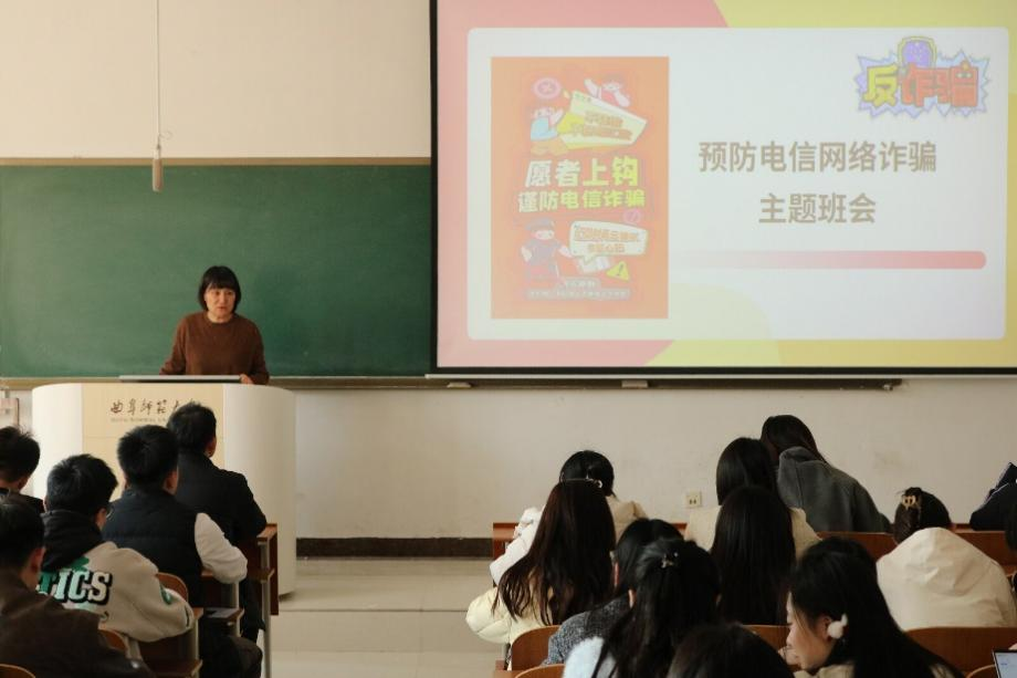 开展预防电信网络诈骗主题班会,研究生辅导员赵岩主持,全体研究生参加。
