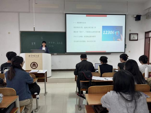 会上,赵岩老师从离校乘车、往返途中、宿舍安全、食品安全等方面进行了详细讲解。建议同学们选择正规交通工具,保持通讯畅通,离校前须落实断水断电,避免安全隐患,留校同学需严格遵守宿舍管理规定。在食品安全方面,赵岩老师提醒同学们要注重饮食卫生,拒绝无卫生保障的流动摊贩食品。会议还对离校、返校工作作出安排,要求研究生提前报备离校、返校信息,合理规划行程,做好途中安全防护。