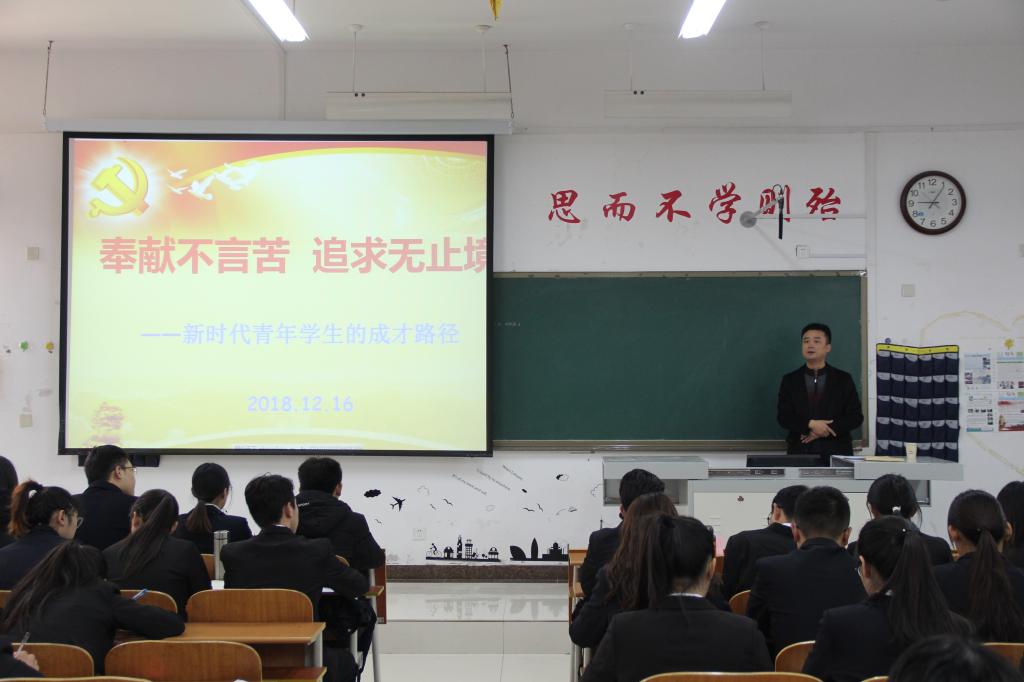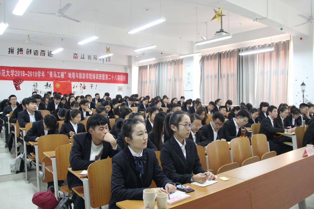 举办“青马工程”暨第二十八期团校学生干部培训讲座。按照“抓住关键少数、以点带面全员学”的工作方针,培养一批坚定信仰马克思主义的学生干部,以星火燎原之势,激发广大学生的学习热情,迅速掀起学习党的十九大精神热潮。培训班邀请党委胡长春书记、刘伟副书记走上讲台分别给学生骨干做“中国传统文化与社会主义核心价值观”、“奉献不言苦,追求无止境—-青年学生成才路径”主题报告。
