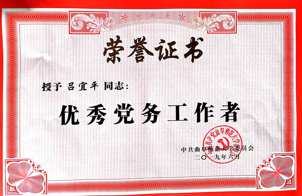 教工党支部书记吕宜平同志荣获老虎机