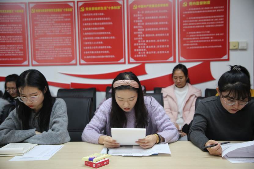 会上,预备党员傅倩倩、夏君、张文静、彭文龙、王晓萌、朱艳冰依次宣读转正申请书并向党组织详细地汇报了预备期内自己在思想、生活、学习、工作等方面的进步,对不足之处做出认真总结,表达了加入中国共产党的坚定决心。随后,入党介绍人孙德健、孙进、马振秀、张宇航分别介绍了六名预备党员的培养考察情况,其他党内同志对以上预备党员能否按期转正进行讨论并充分发表意见。