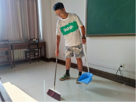 随后,新入党党员开展“行践行之力,展志愿精神”之志愿服务活动,积极主动帮助同学们打扫自习教室。党员们手拿垃圾袋,扫把等工具一丝不苟的清洁着每一间教室。从讲台到角落,志愿者们以认真的态度,高质量的完成着任务,充分发扬了服务同学的志愿精神。