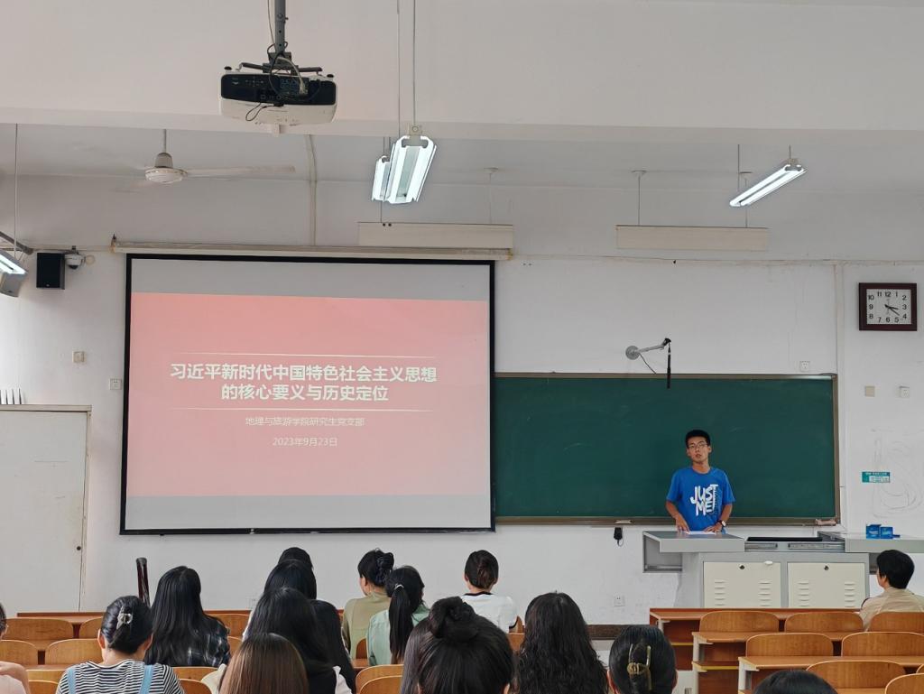研究生各党支部在S413教室召开“学习贯彻习近平新时代中国特色社会主义思想主题教育”专题党课。本次党课由魏正通同志主讲,支部全体党员参加。