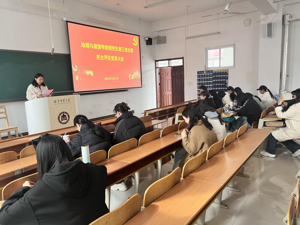 研究生第三党支部在S413召开2023年度民主评议党员大会。会议由支部书记徐佳蓓同志主持,全体党员参加。