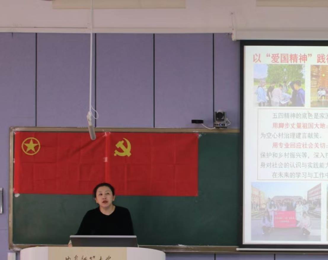 培训会上,李梅以“五四精神”为核心主题,深入剖析五四精神的时代内涵与青年责任的紧密联系,她从专题研讨、榜样分享、实践案例等多个维度展开讲解,并结合学院优秀教师代表的实践案例,详细阐述如何以科学精神深耕专业,夯实报国根基,为同学们提供系统全面的思想指导。随后,她以华东师范大学侯立军教授、北京师范大学张强教授等知名校友的事迹为例,激励同学们以榜样为标杆,将学术研究与实践紧密结合,将个人成长与国家发展紧密结合,把论文写在祖国大地上,勇担时代使命,以实际行动践行五四精神的时代内涵。