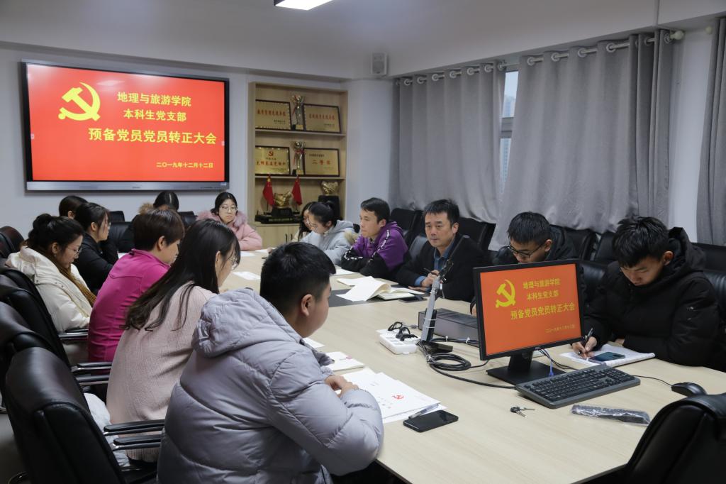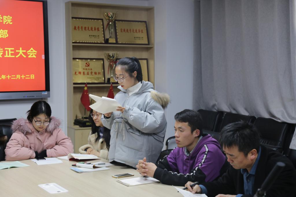 本科生党支部于会馆2401举行预备党员党员转正大会。党委副书记刘伟、2017级辅导员刘翔出席,本科生党支部组织委员、2019级辅导员李梅主持会议,本科生党支部全体党员参加。