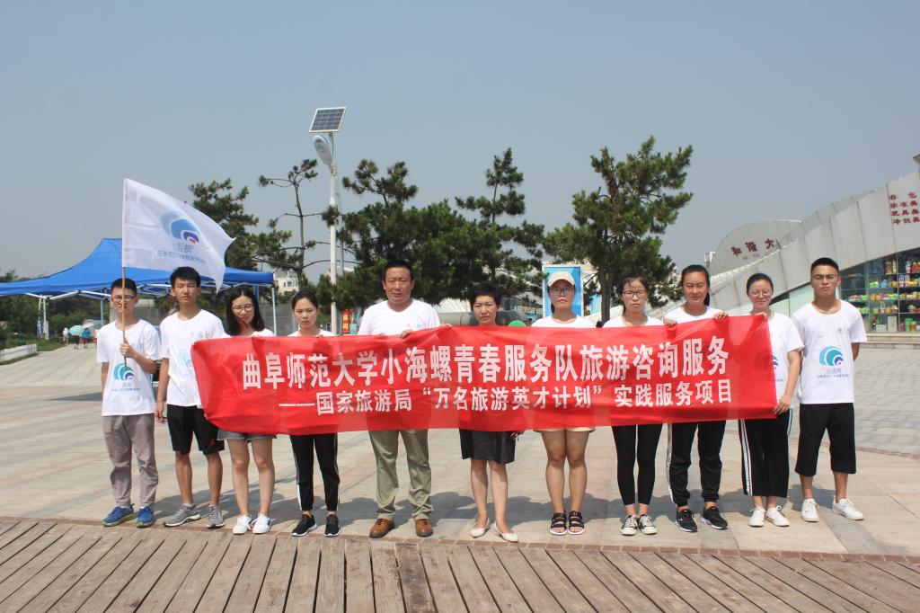 小海螺青春服务队”在指导老师、16级旅游管理班主任武传震老师的率领下,抵达山海天旅游度假区,正式开始为期20天的暑期游客咨询服务社会实践活动。山海天旅游局李苇局长对服务队的到来表示欢迎,并针对山海天度假区旅游特色、优势及服务要求和注意事项进行精心的业务培训及指导。