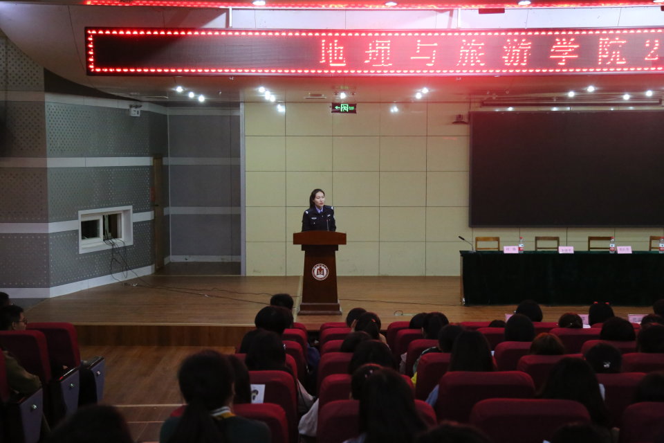 大学城派出所教导员秦绪平警官结合多年的工作经验为同学们进行了安全教育,提醒同学们要增强法制观念,提高自我防范意识。民警现场发放了防范电信诈骗等内容的宣传资料。
