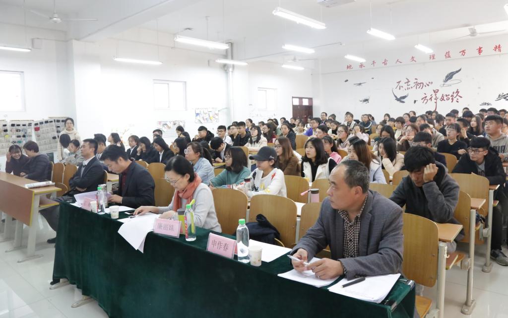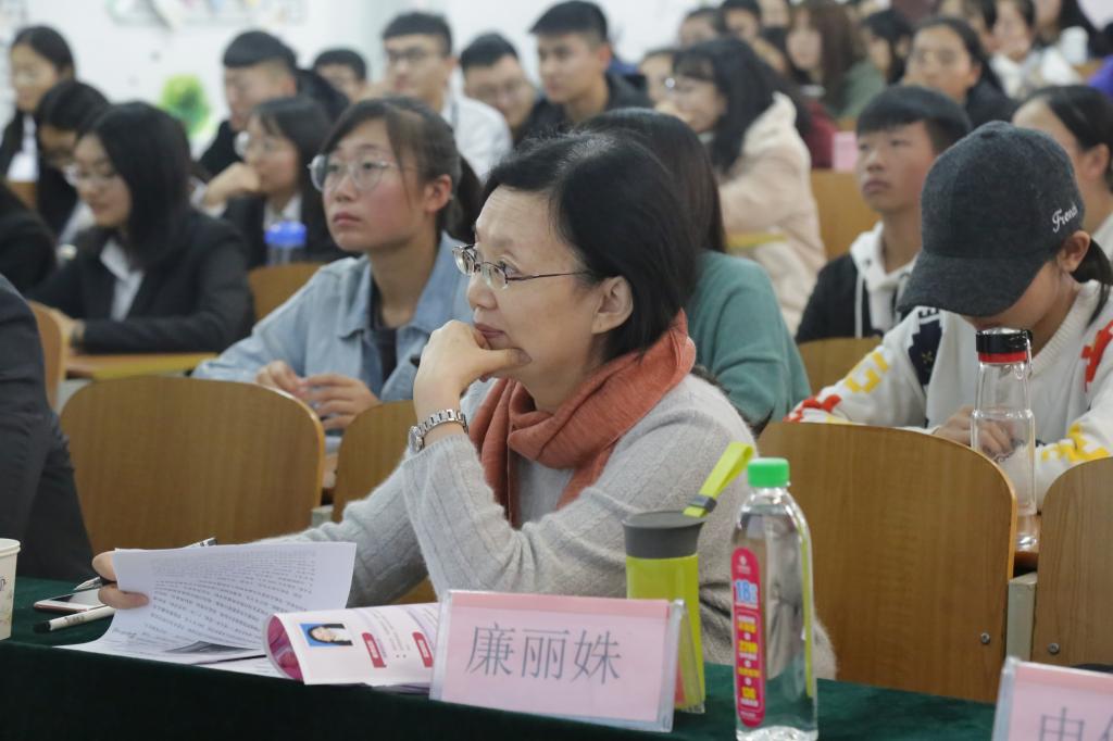 教授廉丽姝、旅游系主任石峰担任专家评委,学院党委副书记刘伟、2015级辅导员李梅出席,团委学生会全体学生干部到场观摩。