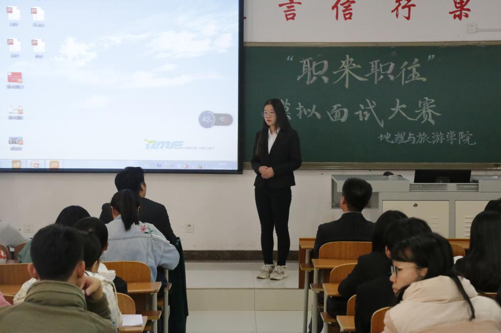 大赛开始,每位选手根据自己的专业特长选择其需要应聘的职务,用精心制作的履历PPT介绍对职业生涯的规划,展现出地理学子沉稳风趣的精神风貌。在与评委老师谈到工作所遇到的棘手问题时,各位选手都能针对问题根源,结合实际情况发表自己独特的见解,巧妙地提出解决办法。他们的精彩表现赢得了评委老师的充分肯定以及在场观众的阵阵掌声。