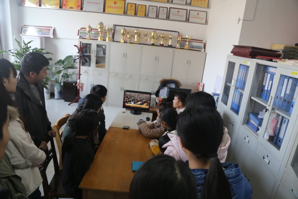 第一时间组织部分学生干部于S楼208室收看庆祝改革开放40周年大会直播盛况。