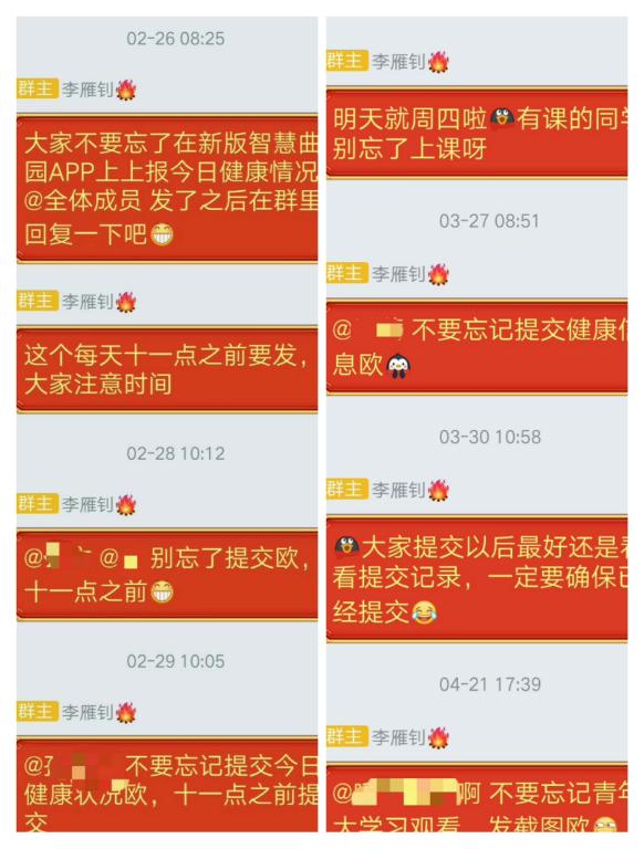 在当前国际疫情持续蔓延、我国防范疫情输入压力不断加大的情况下,我们为了自身和他人的安全仍需要采取积极的措施。作为一名预备党员、学生干部,我积极承担起身上的时代责任,发挥模范带头作用,听从学校和当地政府的统一安排;完成好自己的工作职责,及时传达学校通知,督促小组同学完成每日健康打卡,提醒有课的同学按时上课;对自己严格要求,正视每一堂线上课程,持续充实和完善自己,努力保持自律、积极的生活状态。