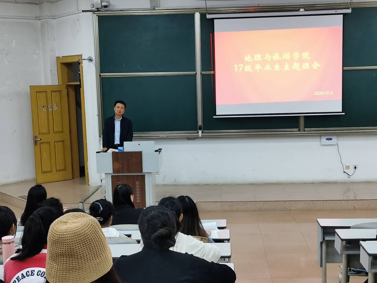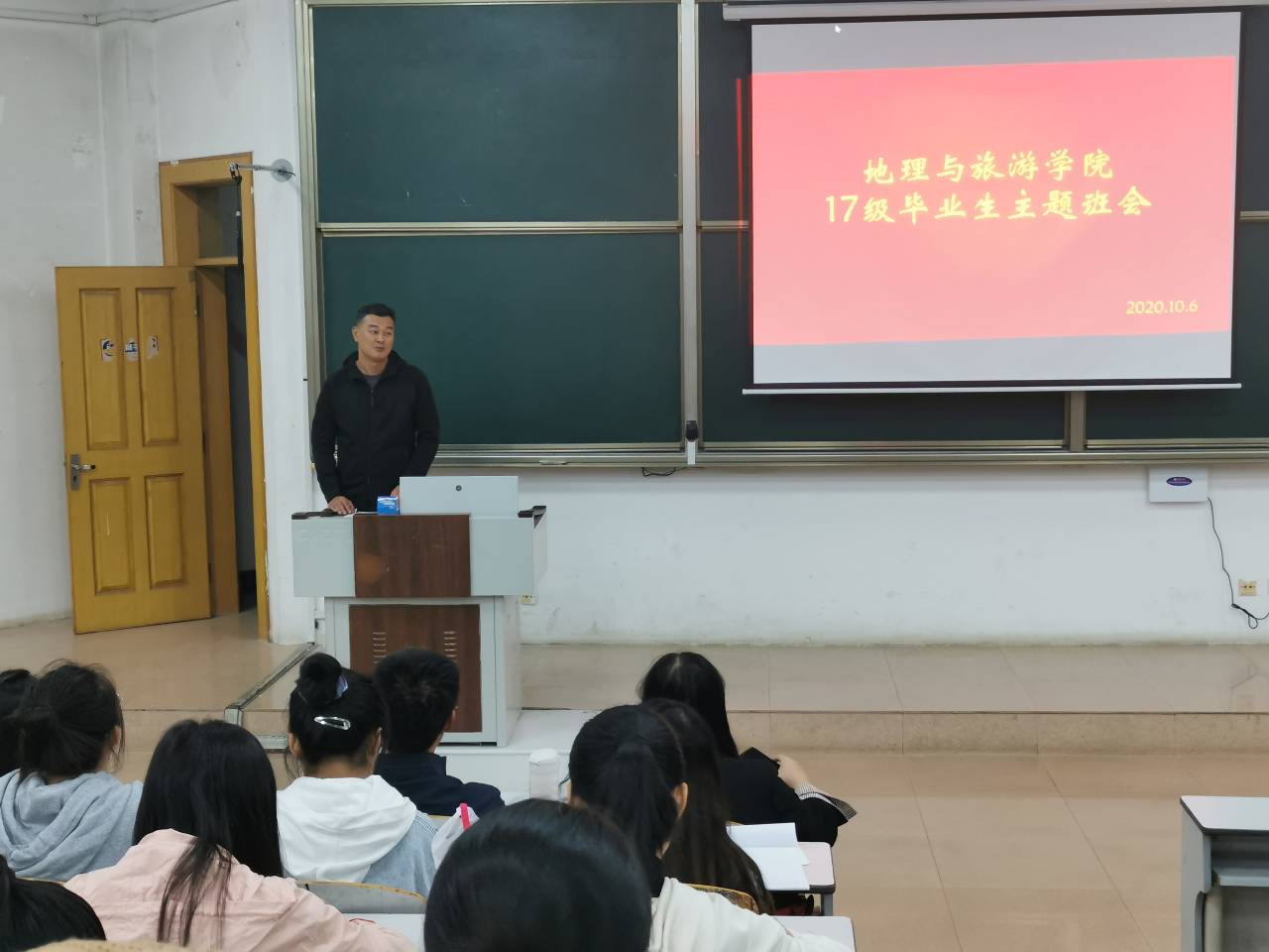 于E101召开2017级毕业生主题班会。党委副书记刘伟、就业指导中心主任、2017级土地资源管理班辅导员曲涛、2017级辅导员董青和2020级辅导员张乃宁出席会议。