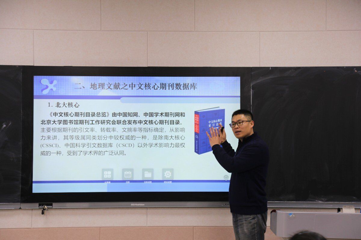 张学波向同学们介绍代表性的地理文献