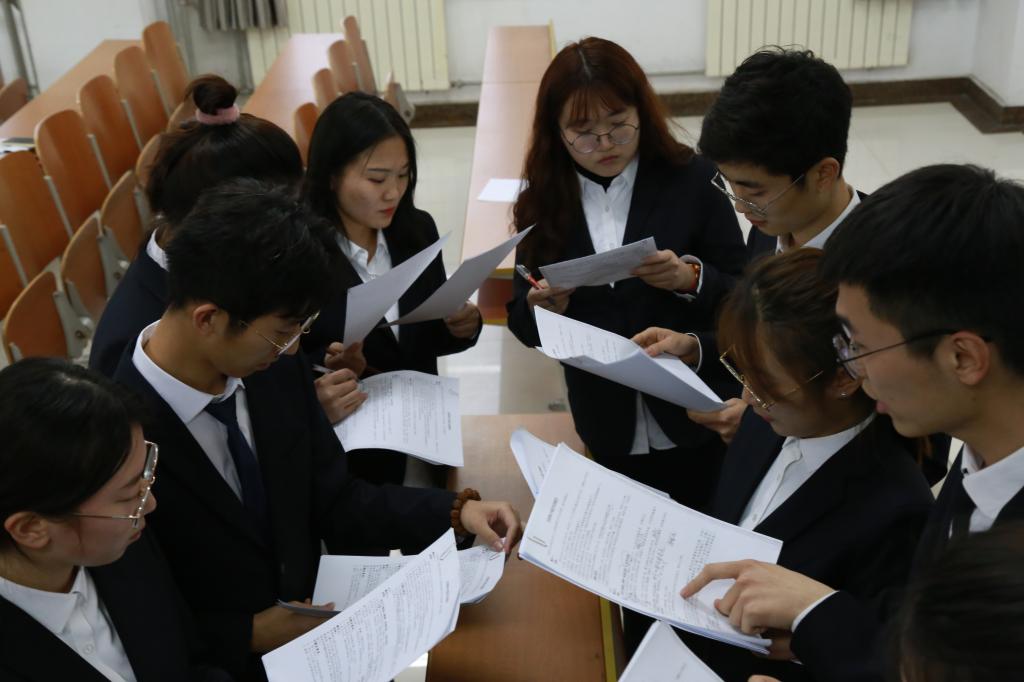 无领导小组讨论答辩设有阅读候选人须知、提纲准备、个人陈述、自由讨论、总结陈述、评委点评六个环节。经过1分钟的短暂思考,各位候选人争分夺秒,积极准备发言提纲,并在个人陈述环节中从容不迫地娓娓道来。在随后的小组自由讨论中,候选人们紧扣题目,一边积极表达自己想法,一边针对各成员间的不同观点进行系统的讨论,达成共识,推选发言人代表,做总结陈述。各位评委老师或针对具体成员的发言进行深入提问,或对小组的总体情况作出评价,各位候选人虚心接受评委老师所提的建议并有序退场。