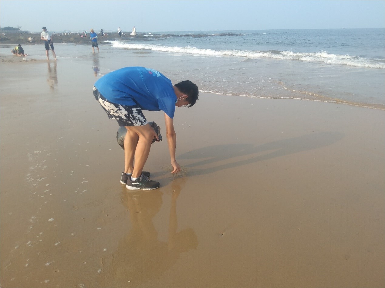 为进一步提高游客们的文明出游意识,小海螺实践队的志愿者们通过捡拾海岸沙滩上的塑料、废弃物等垃圾,向到此的市民和游客传递文明行为。还未退潮的海滩,风大浪高,可阳光海滩景区宽阔洁净的海滩,柔软细腻的沙子仍吸引了大量的游客前来游玩,孩子们水中嬉戏的身影,海滩上静坐沐浴海风的玩伴无一不令人心情愉悦。志愿者们秉承“奉献、友爱、互助、进步”的志愿服务精神,手里拿着黑色垃圾袋,仔细捡拾沙滩上的每一个塑料袋、饮料瓶、卫生纸,甚至是小孩子遗留下来的玩具等垃圾和废弃物,并按垃圾分类的标准按袋分装,进行分类回收。下午的海边太阳依旧不留情面的高高挂起,没过多久,志愿者的脸上便布满了细密的汗珠,前来游玩的人们纷纷向志愿者们投来赞许的目光。活动持续一个多小时,附近的海滩和志愿者初到时已大有不同,整个海滩变得干干净净。“看着志愿者的劳动付出,我们也有很深的触动,以后我们在游玩过程中文明出游,做一个文明游客,不随地乱扔垃圾,并向他们学习,争做文明行为的传播者。”到此游玩的日照市市民李女士激动地说。活动结束后,小海螺青春服务队成员王元元回忆到这句话时,依然感触良多,她表示,此次志愿服务的意义不仅在于给人们带来方便和满足,更重要的是,能够将“文明出游”理念传播给每位游客,引导人们养成良好习惯,彰显出新时代大学生积极承担社会责任,用担当书写无悔青春的青年伟力。