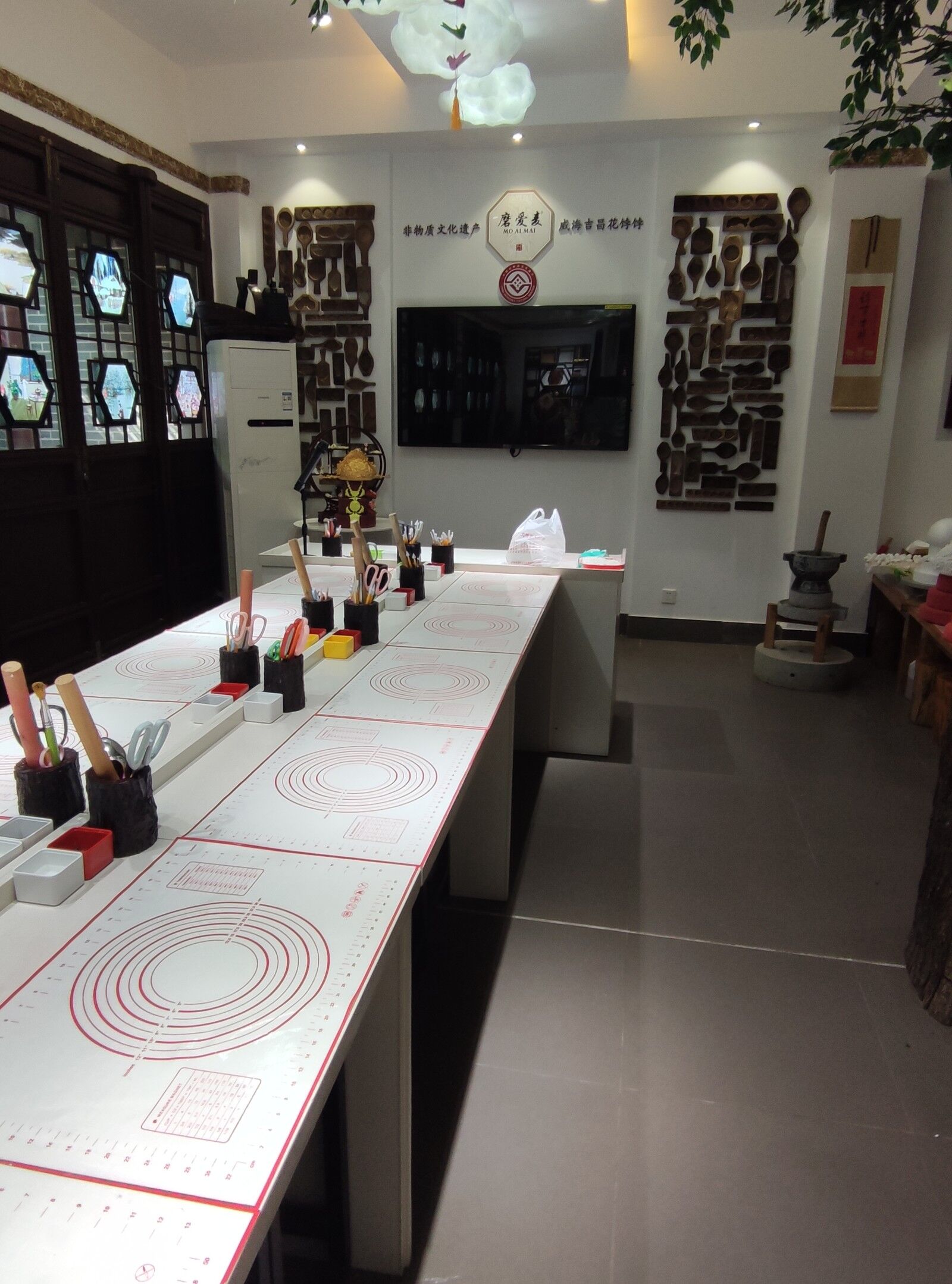 非遗探查小队的部分队员前往威海市威高民俗文化村“磨爱麦”工坊,拜访“吉昌花饽饽”传承人孙海燕。