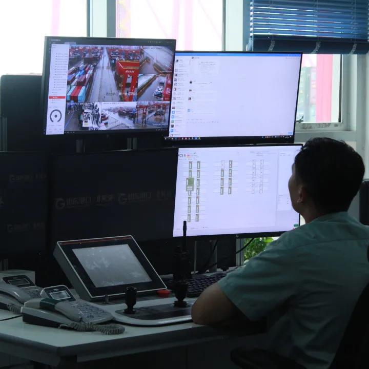 在观览完集装箱自动化堆场后,实践队员们在孙主任的带领下,分批参观了码头运作的核心工作区——中控室,观看集装箱起重机是如何在工作人员的操控下起吊和运作的,并采访了刚交接完工作的工作人员,了解到了堆场全自动作业操纵的技术要求和工作人员的艰辛。工作人员刘伟在接受采访时讲到:“尽管工人不需要像从前般在外辛苦作业,有时还会遇到恶劣的天气,但远程操控的工作方式更要求我们要时刻保持严谨的工作态度、不能粗心大意,以确保码头的平稳正常运作。”即使是在节假日,一线的职工也仍坚守在工作岗位上,毫无怨言、加班加点,保证了重点工程项目的正常运转、顺利推进。也正是因为这些工作人员们的严谨工作作风,日照港口的发展一直保持优良稳定,赢得国内外新老客户的信赖。在他们身上,实践队员们看到了争创一流业绩的工匠精神和一个日照港人无私奉献的默默情怀。