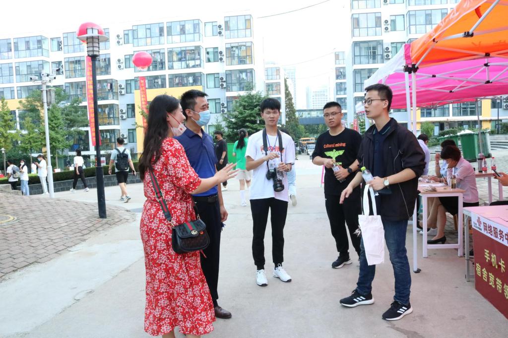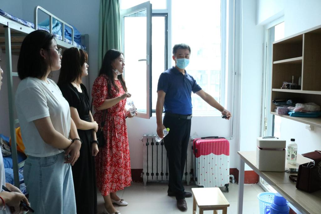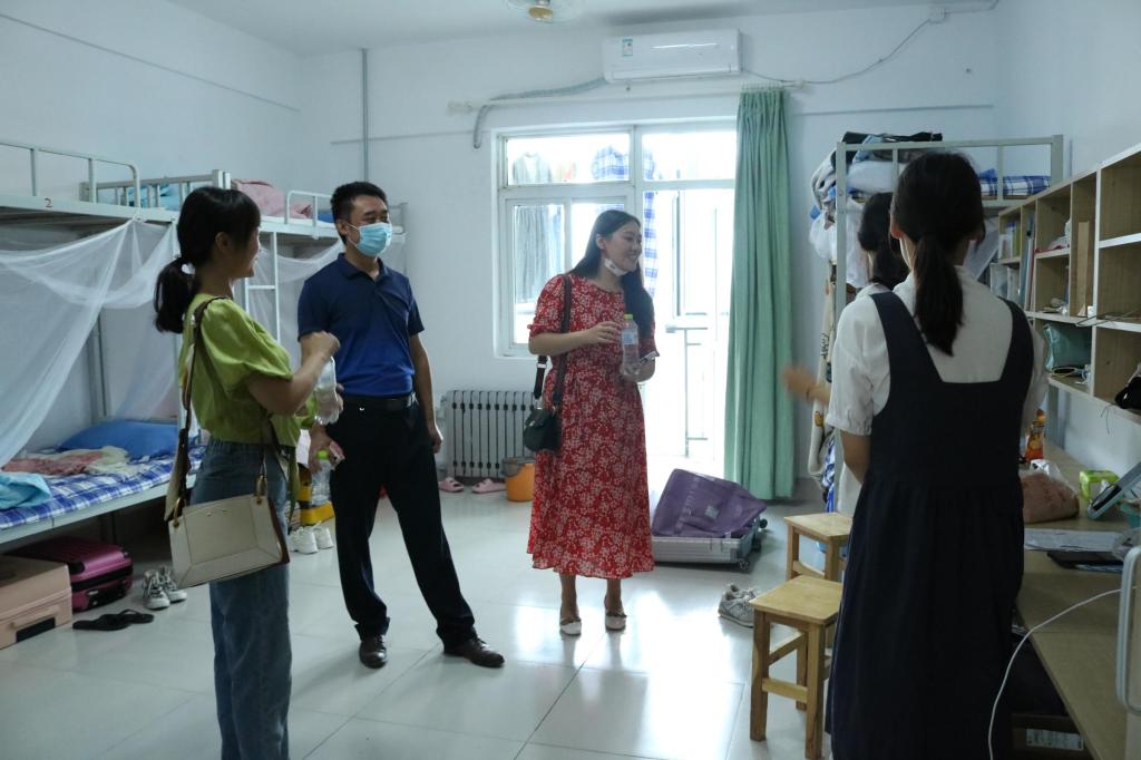 刘伟仔细查看新生宿舍及相关生活设施情况,亲切询问同学们对新环境的适应情况,嘱咐同学们做好疫情防护,有问题和困难及时反映、及时解决。他希望大家要珍惜人生这段最美的年华,度过一个充实而美好的大学生活,不要虚度光阴。董青亲切叮嘱同学们要注意宿舍安全,安全用电,安全出行,保管好人身财产,强化安全意识和自我保护意识,遇到困难要及时与老师沟通交流。