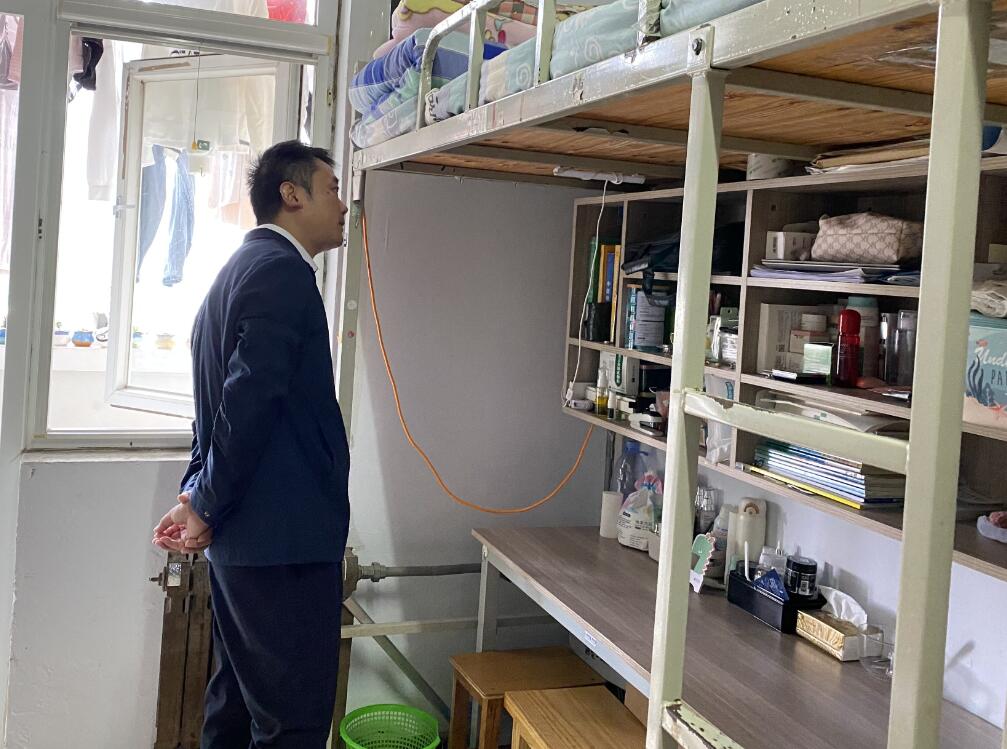 党委副书记刘伟、2018级辅导员田青、2019级辅导员李梅、2020级辅导员张乃宁以及2021级辅导员董青走进宿舍,开展宿舍安全卫生检查工作。