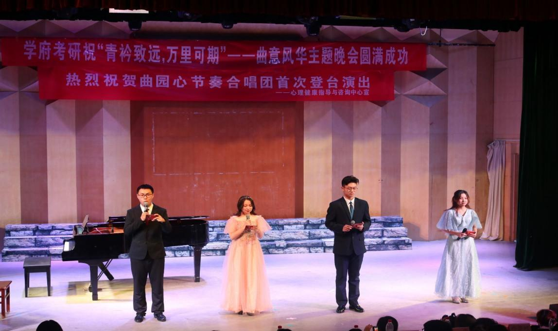 心理健康指导中心主办,各学院心理健康部联合承办的“青衿致远,万里可期”曲意风华主题晚会于音乐厅顺利举行,各学院院草参与本次活动。