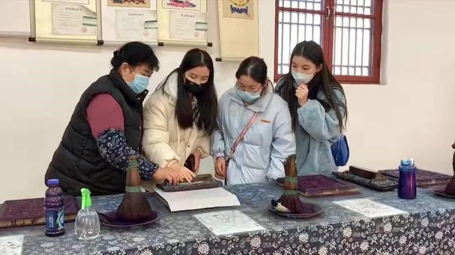 实践队员学习年画制作