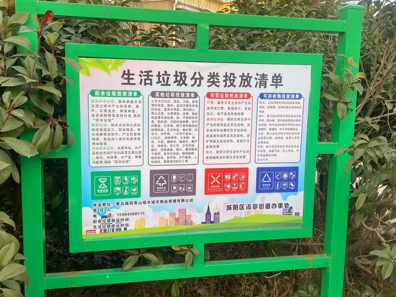 图为垃圾桶旁设置的生活垃圾分类投放清单