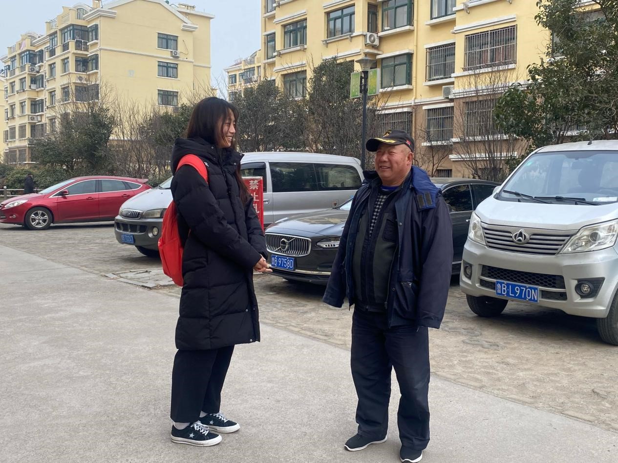 图为实践队员向当地村民询问社区垃圾分类的实行情况