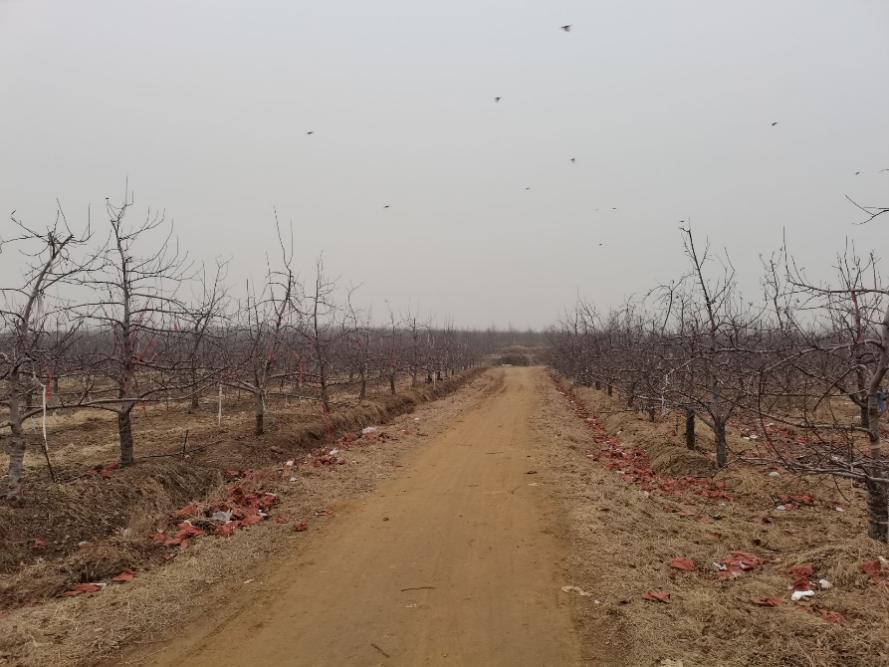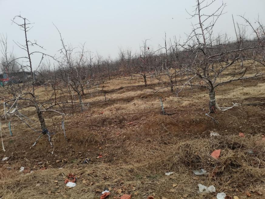实现共同富裕举措中强调要促进农村一二三产业融合发展,支持和鼓励农民就业创业,拓宽增收渠道,采摘园是政府帮助支持促进农村发展的重要项目。通过对该苹果采摘园的实地调查采访得知,采摘园是在去年刚刚成立。虽然苹果采摘园建成时间较短,但该地苹果种植已经有五六年了。成立初期,也是通过征地整地集中规划,承包土地建设成为苹果园。由于苹果树长成需要一定时间,所以苹果园在向外开放前期已做了一些其他工作,包括苹果的种植培育、引水渠道建设等。该苹果采摘园与其他采摘园相比,面积较大。现在正值冬季,北方气温低,并不是苹果树生长结果的时节,采摘园地已呈枯枝落叶状态,显得较为荒凉。此时游客正少,采摘园也因此暂停对外经营开放。该采摘园处在山东丘陵地形区内,周围分布一些低矮山地,地形起伏较大,海拔较高,适于苹果种植。距离海边较远,气温日较差较大,有利于苹果的糖分积累,甘甜可口,口感较好。该地种植的苹果也较为受欢迎。