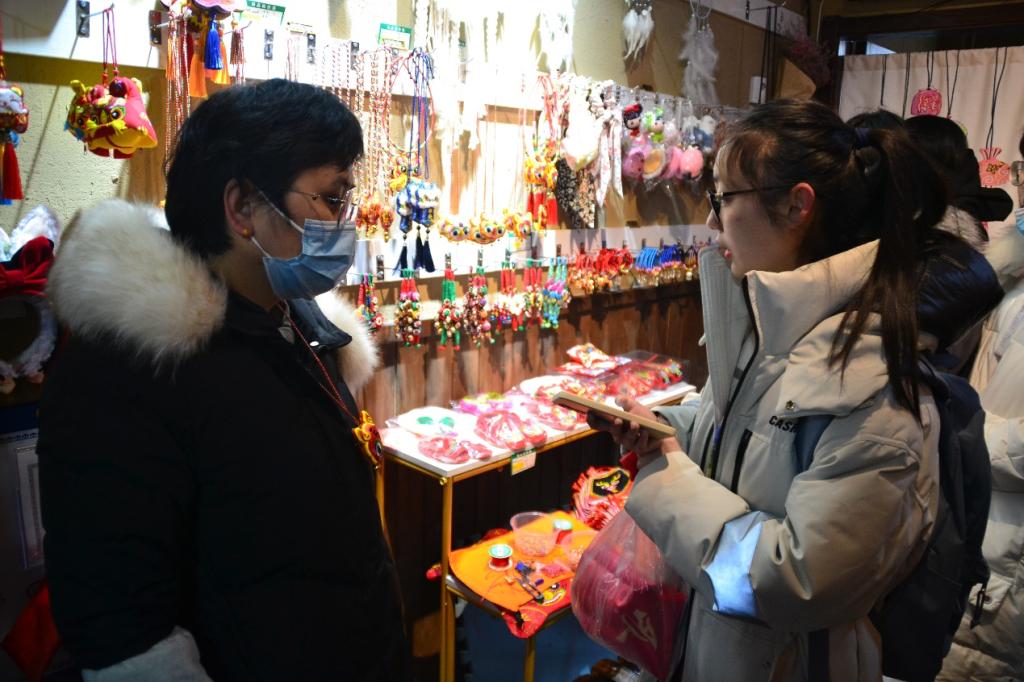 1月8日上午,非遗探查小队来到日照东夷小镇割花“非遗工坊”,探访山东省级非物质文化遗产。进入工坊,琳琅满目的割绣工艺品映入眼帘。有栩栩如生的老虎头玩偶、朴素精致的手链、柔软鲜艳的鞋垫、鲜亮夺目的荷包等。队员们对此产生了浓厚的兴趣,便对传承人徐俪平进行了采访。徐俪平介绍到,割花这门技艺在老一辈用来做鞋垫,但随着时代发展,割花技艺不断创新,逐渐用在工艺品上。采访结束后,队员们挑选自己喜欢的工艺品,更有队员被割花艺术深深吸引,向传承人提出希望在寒假中来此学习割花的技艺。
