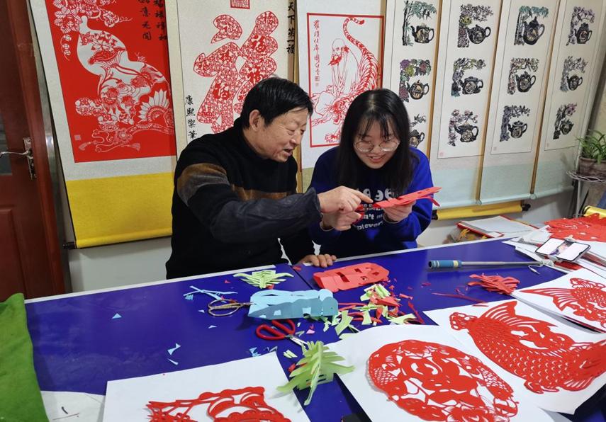 为探寻胶州地区非物质文化遗产的历史与发展,队员们选择了省级非物质文化遗产——胶州剪纸,体验和学习剪纸的制作过程。1月23日上午,非遗探查小队拜访了胶州剪纸代表性传承人迟炳杰老师,进一步感受非物质文化遗产蕴含的智慧与艺术。